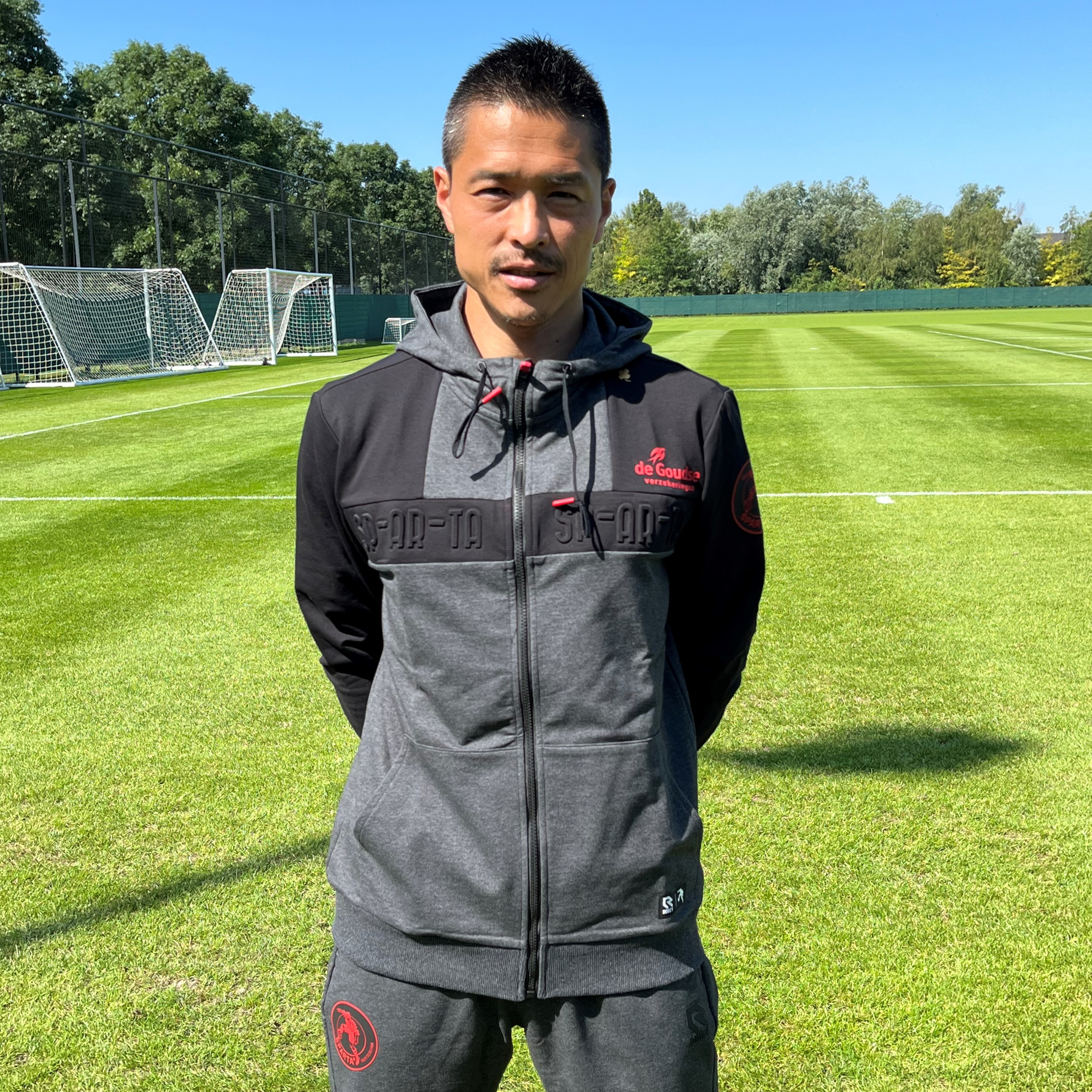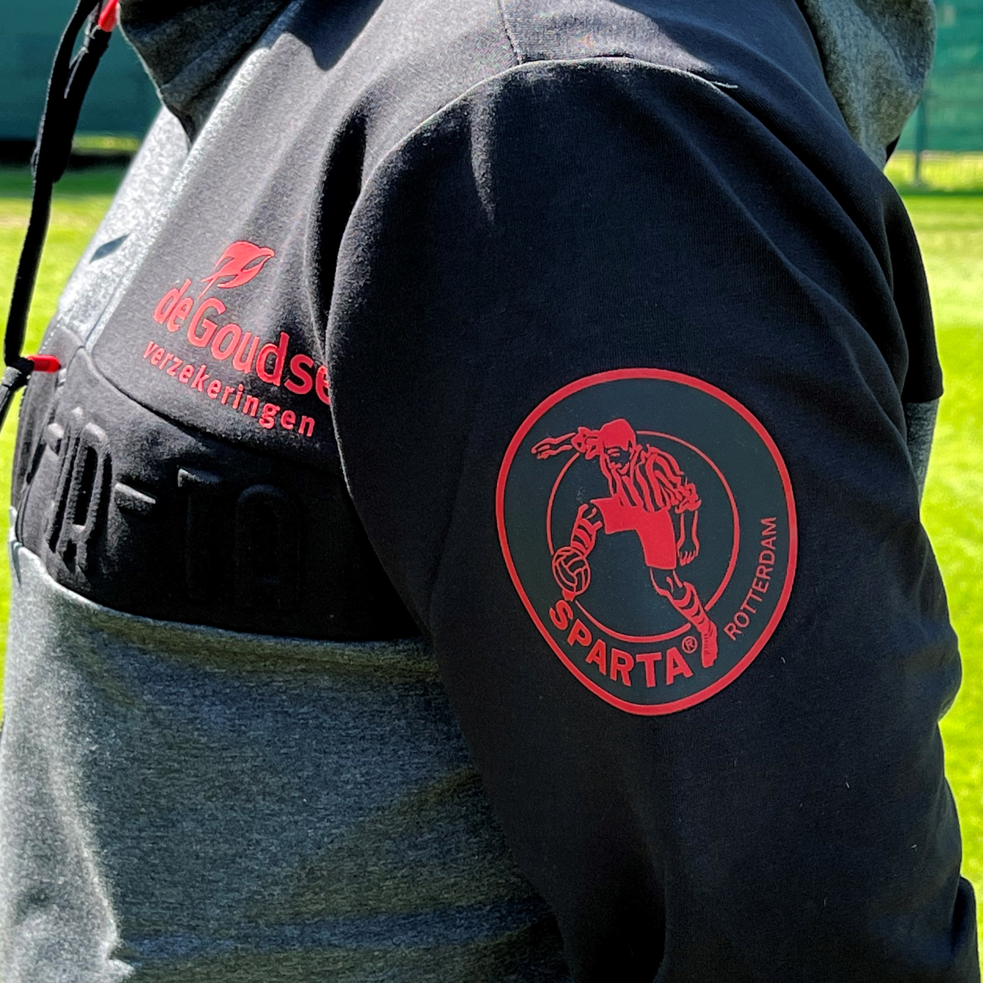 Maak jouw Sparta-collectie compleet en loop er 'Op z'n Spartaans' bij in het Presentatiejack 23-24. Het licht grijze jack met rode details, is gemaakt van katoen (68%), polyester (27%) elastan (5%).